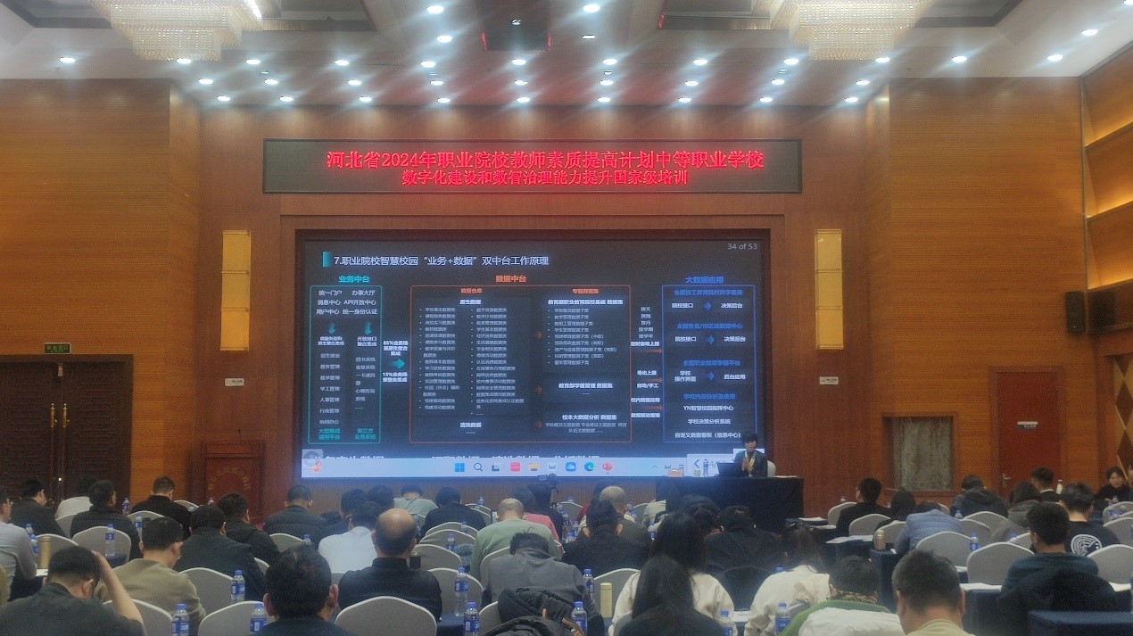 為(wèi)了(le)有(yǒu)效推進中等職業↑∏•(yè)學校(xiào)數(shù)字化(h>✘ ♦uà)建設和(hé)數(shù)智治理(lǐ)能(néng)力的(de)提升,≤× §2025年(nián)1月(yuè)6日(rì)至10日(rì),由河(✘¥≈γhé)北(běi)省教育廳主辦、河(hé)北(běi)城(chéng)鄉(x♣∞↕iāng)建設學校(xiào)承辦的(de)河(hé) λ北(běi)省2024年(nián)度職業(yèα☆∑)院校(xiào)教師(shī)素質提高(gā₩≈±o)計(jì)劃“中等職業(yè)學校(xiγ∑ào)數(shù)字化(huà)建設和(hé)數(shù)γ ®∏智治理(lǐ)能(néng)力提升”國(guó)培項目順利舉行(xíng),來δα§ (lái)自(zì)全省中職學校(xiào)的(de)150位↔σ& 分(fēn)管信息化(huà)建設校(xiào)領導和(hé)部門(π mén)負責人(rén)參加了(le)培訓。依能(↑£≈néng)職業(yè)教育研究所應邀參會(huì)。本次培訓內(nèi)容↑≠豐富,既有(yǒu)教育部特聘全國(guó)信息化(huà)标杆校♦ ↕€(xiào)、職業(yè)教育數(shù→↕&)字基座中職數(shù)