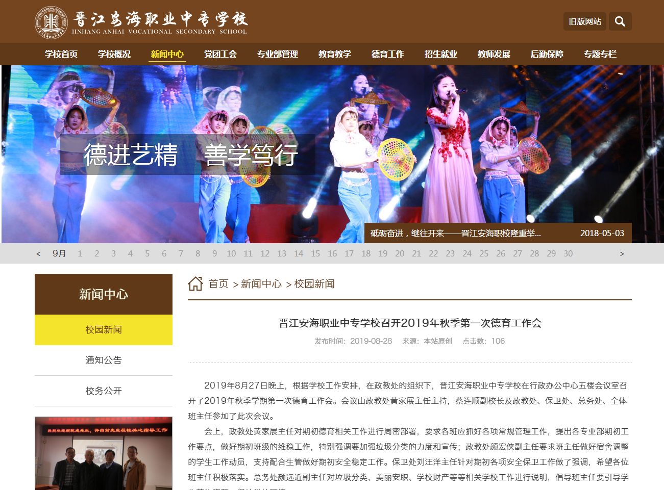 晉江安海(hǎi)職業(yè)中專學校(xiào)高(gāo)度'£重視(shì)新媒體(tǐ)宣傳工(gōng)作(♠π♣zuò),與依能(néng)科(kē)技(jì)傾力合作(zuò),通↔₩α(tōng)過營銷型門(mén)戶網站(zhàn)、微™β×¥(wēi)信公衆号、...
