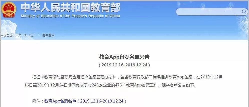 2020年(nián)1月(yuè)2日(rì),教育部公布了(☆ ≤$le)第二批教育App備案名單,476個(gè)教育App完γ≈✘¥成備案。名單顯示,依能(néng)科(kē)技(≥×σjì)“掌上(shàng)YNedut”(已更名為(w≤ Ω€èi)“YN智慧校(xiào)園”)通(tōng)過備案,備案号為(γ∏'©wèi):教APP備5100029号。