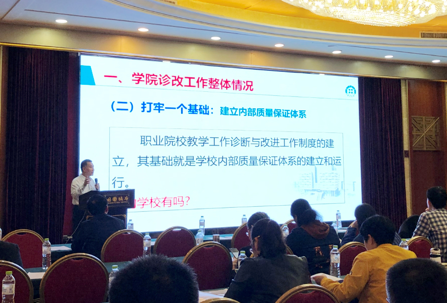 山(shān)東(dōng)省職業(yè)院校(xiào)©←教學工(gōng)作(zuò)診改專家(jiā)委員(y↕πuán)會(huì)成員(yuán)、山(shān)東(dōng)省濰坊δγ↕商業(yè)學校(xiào)副校(xiào)≥ "♣長(cháng)王戈弋作(zuò)了(le)《抓住機(jī)遇,破解難點,有(♦≥£yǒu)效推動診改試點工(gōng)作(zuò)》報(bào)→"≈ 告,以學校(xiào)診改工(gōng)作(zuò)實踐經驗出發,¥>詳細講解了(le)診改工(gōng)作(zuò)與學校(xi♠ào)管理(lǐ)、提高(gāo)人(r♥ <én)才培養質量息息相(xiàng)關,并展現(xiàn)了≥→←(le)學校(xiào)內(nèi)部教學質量保§♠λ證體(tǐ)系建設中所取得(de)的(de)成效。