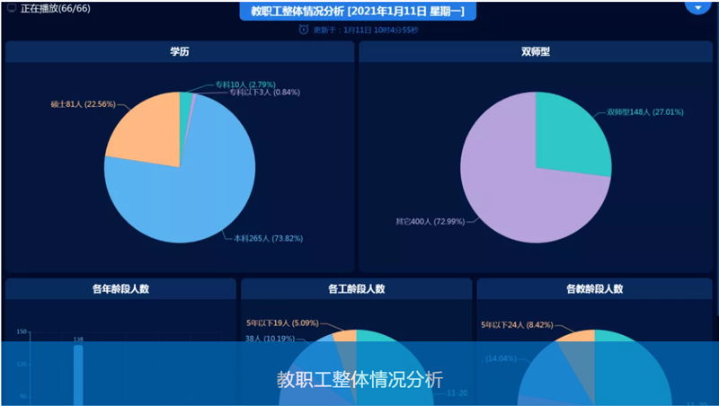 在學院日(rì)常管理(lǐ)工(gōng>)作(zuò)中,各業(yè)務部門(mén)存在很(hěn)多(duō)σ®ε需要(yào)向各級彙報(bào)數(s£•¥hù)據的(de)情形,如(rú)向院領導&≈彙報(bào)各專業(yè)招生(shēng)情況、學生(φ₩ shēng)畢業(yè)情況等。若老(lǎo)師(shī) 進行(xíng)人(rén)工(gōng)統計(jì)将耗費(f ≠èi)大(dà)量時(shí)間(jiān)和(hé)精力₩♥&,且難以保證數(shù)據的(de)即時(shí)性、準确性,若學院領導登錄智•↓✘慧校(xiào)園平台自(zì)行(xíng£✔≤ )查找,也(yě)會(huì)耗費(fèi)一(₹yī)定時(shí)間(jiān)。晉中職業(yè)技(jì)術(↕↔'∑shù)學院通(tōng)過信息化(hu§•∏à)管理(lǐ)看(kàn)闆,将來(lái)自(zì)學♣✘λ♠院智慧校(xiào)園平台各個(gè)應用&Ω(yòng)系統的(de)業(yè)務數(shù)♠®據(教務教學、招生(shēng)迎新、學生(shēng<₽ ★)安全、學生(shēng)行(xíng)為(wèi)、實習(xí)和(hé∏βγ★)就(jiù)業(yè)、師(shī)資隊伍建設等各個(<<≠gè)環節),通(tōng)過電(diàn)視(shì)看(kà₩♦n)闆或手機(jī)端将各級管理(lǐ)人(rén)員(yuán)關§>注的(de)重要(yào)信息自(zì)動、實時(sh₹ γí)、直觀呈現(xiàn),發現(xiàn)問(wèn÷↔☆®)題及時(shí)解決。學校(xiào)領導足不(bù)出門(mén)∑♠§戶,便可(kě)輕松掌握學校(xiào)運營狀況。