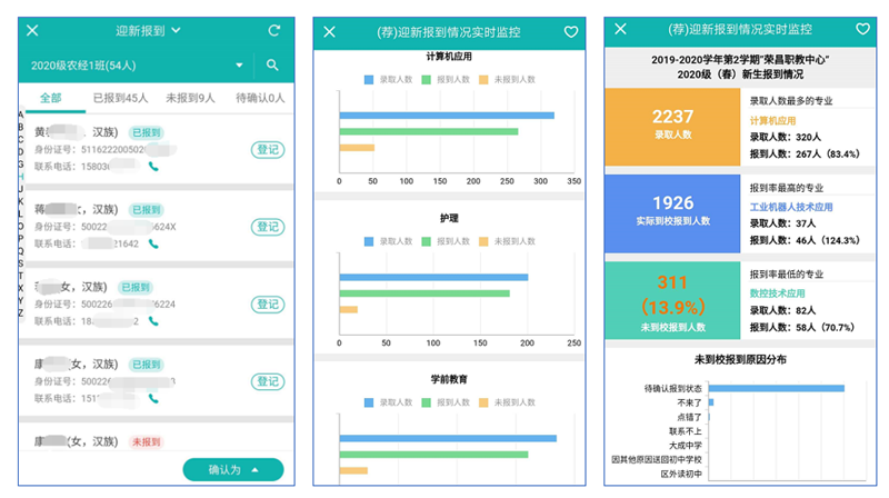 學校(xiào)領導、專業(yè)部負責人(rén≤δ ☆)可(kě)通(tōng)過平台的(de)手機(j₹✔ī)端或網頁端,實時(shí)掌控迎新情況,對(du ♠→πì)異常情況進行(xíng)有(yǒu)效監∑✔¶控,提高(gāo)報(bào)到(dàoσ§≠∏)工(gōng)作(zuò)的(de)效率。