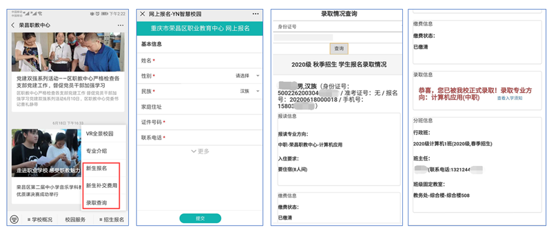 疫情影(yǐng)響下(xià),許多(duō)↔ •傳統的(de)招生(shēng)工(gōng§£")作(zuò)走向困境,而榮昌區(qū)職業(yè)教育中←πε"心發揮互聯網手段,加強招生(shēng)宣傳"≤&≥,通(tōng)過依能(néng)智慧校(xiào)¶≤®φ園平台實現(xiàn)招生(shēng)迎新工(gōng)作(zuò)智©±↕₹能(néng)化(huà)管理(lǐ),極大(↓∏dà)地(dì)提高(gāo)工(gōn&↓δ✔g)作(zuò)質量和(hé)效率,圓滿完成招生(shēng)工(gō£↓ng)作(zuò),開(kāi)辟招生(shēng)新局面。