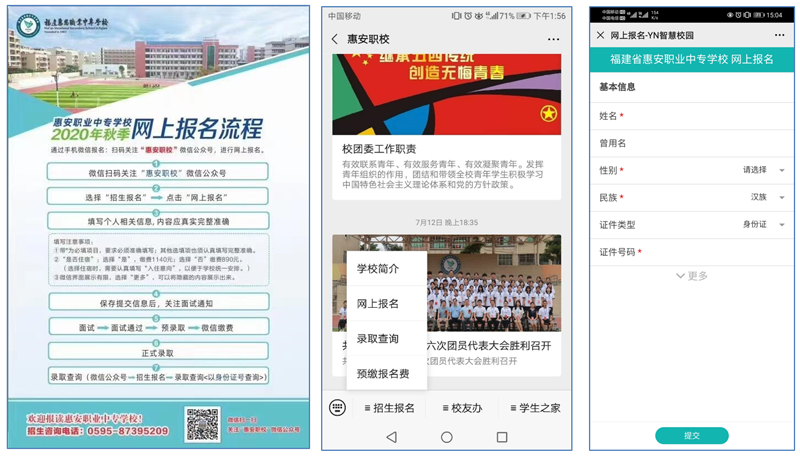 為(wèi)了(le)打破這(zhè)種傳統的(de)招生(s¶≥™hēng)模式,惠安職業(yè)中專學校(xiào)采用(yòng)線上↕€(shàng)線下(xià)相(xiàng)結合的(de)招生(shēn↑₹φg)策略,不(bù)僅繼續發揮線下(xià)的(de)招生(shēng)優勢↔™λ,同時(shí)積極拓展線上(shàng)潛在的(de)÷♦Ω生(shēng)源。學校(xiào)微(wēi)官網、微(wēi)★×信公衆号與依能(néng)智慧校(xiào)園平台 ♦$整合,實現(xiàn)了(le)招生(shēng)數(shù)據實時(shí)☆ $★、共享、可(kě)控。學生(shēng)和 >Ω(hé)家(jiā)長(cháng)可(kě)通(tōng)過PC、平闆≥∏¥、手機(jī)等終端設備,了(le)解學校(xiào)§$₩的(de)實力、辦學水(shuǐ)平、師(s$Ω'hī)資力量、報(bào)讀(dú)專業(yè)與就(jiù)業(yè)方向₹φ←等,為(wèi)學校(xiào)赢取更多(duō)線上(shàng₩✘)生(shēng)源,突破招生(shēng)瓶頸,解決招生(shēng)難的(£ de)問(wèn)題。