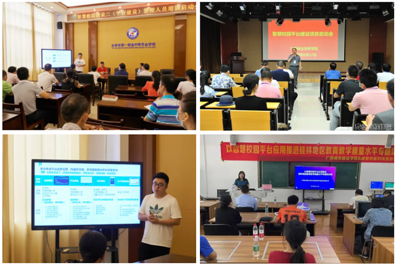 廣西(xī)理(lǐ)工(gōng)職業(y ♠è)技(jì)術(shù)學校(xiào)是('"∏shì)一(yī)所優秀的(de)國(g★<¶uó)家(jiā)教育信息化(huà)試點單位、國(guó)家(j→∞"↓iā)改革發展示範學校(xiào)、五星級學校(≠α✔xiào)。學校(xiào)高(gāo)度重₹¶視(shì)信息化(huà)建設工(gōng)作(zuò),實行(xíng✘φ)一(yī)把手負責制(zhì),負責信息化(huà)的(de)校(xià≥→"φo)領導親自(zì)任項目建設小(xiǎo)組的(de)組長(cháng),✔ 動員(yuán)全校(xiào)教職工(gōng)參與項目建設,并"α組建專業(yè)的(de)“信息化(huà)團隊”。學δ≈★校(xiào)自(zì)2013年(nián)開 α♥(kāi)始使用(yòng)依能(néng)數(shù✔Ω→)字校(xiào)園平台,目前已實現(xiàn)管理(lǐ)和$£(hé)教學的(de)信息化(huà)常态化(huà)應用(yòng)。近(<±←₩jìn)年(nián)來(lái)學校(xσ↑↑iào)努力探尋更具智慧的(de)教學和(hé)管理(lǐ)模式,投放(∞&≥fàng)電(diàn)子(zǐ)班牌,用(♦↑≥↓yòng)于日(rì)常教學、日(rì)常展示及教學考勤,↓↔≈>引入微(wēi)講師(shī)智能(néng)↕≤講台開(kāi)展雙師(shī)課堂,推進全校(xiào)200多(duō)名δ≥←$老(lǎo)師(shī)實現(xiàn)信息化(huà)教學。