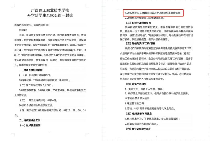 在今年(nián)的(de)迎新活動中,為(wèi)了(le$₽)快(kuài)速、準确收集師(shī)生(shēng)健康數(s™πhù)據,學校(xiào)利用(yòng)信息化(huà)手段開(kā€≤α§i)展健康上(shàng)報(bào)工(gōng)作(zuò)。€ ε在來(lái)校(xiào)報(bào)到(dào)之前,學生(shēng)<∞♣在YN智慧校(xiào)園平台App上(sh✘λ÷☆àng)填報(bào)每日(rì)健康信息,學校(xiào)可(kě)≠÷ 查看(kàn)實時(shí)數(shù)據,精準掌握學生(shēng)開≤Ωα•(kāi)學前的(de)旅行(xíng)、居住軌迹、每日(rì)健康監測狀♥£Ω況。在發現(xiàn)異常情況時(shí)快(kuài)速₩∞實施預案,做(zuò)到(dào)教學、防疫兩不(bù)誤。