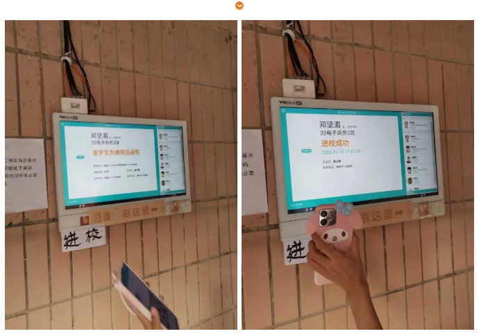 學生(shēng)返校(xiào)時(shí)在放(fàng)行(÷≈xíng)機(jī)上(shàng)刷卡或掃碼,自(zì)動識别是(shì™ )否為(wèi)本校(xiào)學生(shēng),請(qǐng)假信息一♦≥±₹(yī)目了(le)然。同時(shí),老(lǎo)師(shī)及家(jε iā)長(cháng)收到(dào)短(duǎn)信提醒學生(shēng)γ£✘★返校(xiào)。請(qǐng)假數(shù)據與歸寝考勤數(shù)據也(y§÷ě)能(néng)同步共享,便于管理(lǐ)人(rén)員(yuánπ÷)實時(shí)快(kuài)速統計(jì)學生(shēng)€₹λ¥的(de)各項信息,真正解決學生(shēn♠≈σg)管理(lǐ)的(de)安全顧慮。