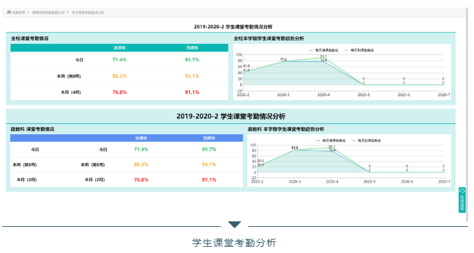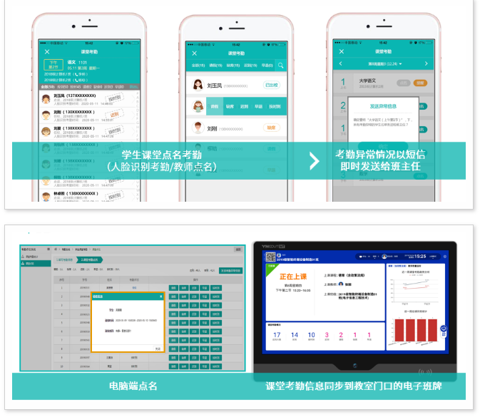 職業(yè)院校(xiào)學生(shēng)上(shàng)課遲到(d∑ ào)、早退、曠課等現(xiàn)象嚴重,上(sh'♣ γàng)課點名代答(dá)代簽到(dào)等行(xíng)為(wèi)泛→α↔ 濫,學生(shēng)考勤數(shù)據不(bù)明(míng)≠✘,存在一(yī)定的(de)安全隐患;同時(shí),傳統人(rén)工→≥≤≈(gōng)點名方式效率較低(dī),教師(shī)工(gōng)作(z>★↔uò)量大(dà),耗時(shí)長(cháng),占用(yòng)課堂時∑↑(shí)間(jiān),且點名記錄的(de)數(shù)據不(bù)易利用(↔≤σyòng)。甘肅省理(lǐ)工(gōng)中等專業♣(yè)學校(xiào)、重慶市(shì)工(gōng)業(yè)技(jì)¶<& 師(shī)學院等學校(xiào)通(tōng)過依能(nénγγ♥g)智慧校(xiào)園平台進行(xíng)學生(shēng)γδ人(rén)臉信息采集,可(kě)實現(xi☆"àn)無感考勤。相(xiàng)比傳統課堂考勤在張上(shàng)一(yī)"'α個(gè)一(yī)個(gè)打勾,考勤效率更高(gāo),學ε↔→λ生(shēng)上(shàng)課出勤數(shù)據精準掌握。∏π€同時(shí),老(lǎo)師(shī)也(yě)可(kě)以在智慧校λ€♠(xiào)園的(de)手機(jī)端、電(σ↓₩→diàn)腦(nǎo)端随機(jī)點名,數(shù)據與智慧校(xiào)β↔®♥園平台實時(shí)共享,相(xiàng)關管理(lǐ)人(rén)員(y©®uán)可(kě)高(gāo)效、實時(shí)、準确無誤地(dì)掌握學生(↔→shēng)出勤情況。