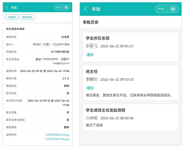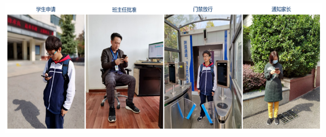 學生(shēng)在手機(jī)App上(shàng)填寫請♦♣&(qǐng)假申請(qǐng),班主任審批通(tōng₽→)過後學生(shēng)方可(kě)離(lí)✔≠"校(xiào)。學生(shēng)出校(x<£iào)門(mén)時(shí),在安裝在門(mén)衛處的(de)請(↑↓&qǐng)假放(fàng)行(xíng)機(jī)刷卡/&± 掃碼即可(kě)離(lí)校(xiào),語音(yīn)播報(bào),讓↔'δ↕放(fàng)行(xíng)更便捷,離(lí)>®校(xiào)信息自(zì)動發送給老(lǎo)師(s€φ≥✔hī)和(hé)家(jiā)長(cháng)。
