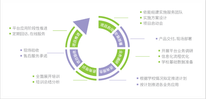 如(rú)何讓職業(yè)院校(xiào)信息化(hu<γ♥à)真正用(yòng)起來(lái)?這₩↔(zhè)成為(wèi)教育主管部門(mén®¥™)、學校(xiào)關注的(de)核心問(αφ<wèn)題,也(yě)是(shì)依能(néng)教育産品設Ω™計(jì)、研發、服務的(de)重要(yào)評價方式之一(yī)。↓↓β根據職業(yè)院校(xiào)信息化(huà)應用(yòng)₹•中存在的(de)現(xiàn)實問(wèn)題,依能(néng)教育針對(d✔<σ§uì)不(bù)同信息化(huà)應用(yòng)基 ™♣礎的(de)用(yòng)戶量身(shēn)定制(zhì)服務方案,幫★ε∏助學校(xiào)将平台成功用(yòng)起來(lái)。以“用(yε®òng)戶價值”為(wèi)中心,多(duō)€≈★措并舉,幫助學校(xiào)推進産品應用£≈↕(yòng),确保學校(xiào)信息化€☆× (huà)項目有(yǒu)效落地(dì)。