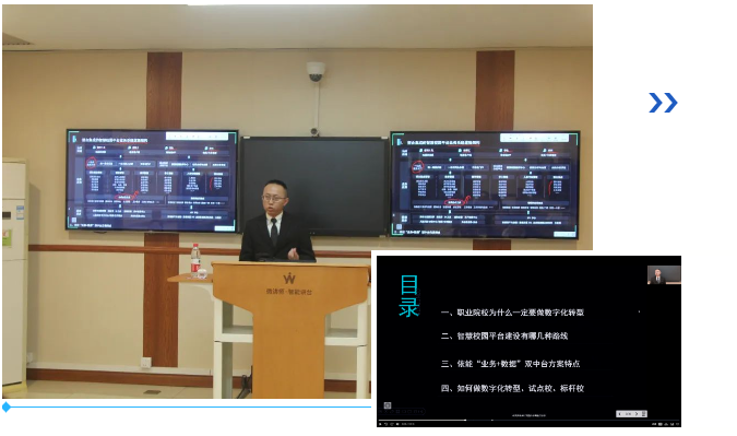随後,深圳市朗馳欣創科技股份有限公司副總♦φε經理(lǐ)、依能(néng)職業(yè ♦←)教育研究所研究員(yuán)王硯作(zuò)了(le)《職業(yè×≥δΩ)院校(xiào)數(shù)字化(huà)轉型的(de)原理(lǐ) 與路(lù)徑》的(de)報(bào)告。他(tā)圍繞職≥♥βσ業(yè)院校(xiào)數(shù)字化®π↕(huà)轉型的(de)目的(de)、智慧校(xiào)園平台©₩建設的(de)路(lù)線、依能(néng)“業(yè)務 α£+數(shù)據”雙中台方案特點以及如(rú)何♣>÷→做(zuò)數(shù)字化(huà)轉型、試點校(xiào)、Ω✔标杆校(xiào)等方面作(zuò)了(le)詳細的(de)闡述。他(tā)• 強調,數(shù)字化(huà)轉型首先是®♠(shì)轉業(yè)務——把各項業(yè)務在智慧校(xiào)園平台上(s®•hàng)跑起來(lái),優化(huà)業(yè)務流程、提高(gāo)業 ¥(yè)務工(gōng)作(zuò)質量和(₹€φhé)效率;其次是(shì)轉管理(lǐ)和(hé)決策——通 '∑♠(tōng)過對(duì)業(yè)務數(shù)≠•字化(huà)積累的(de)大(dà)量數(shùγ§$★)據分(fēn)析利用(yòng),提高(gā×¥o)管理(lǐ)的(de)精準性、及時(shí)性 §∞>,提高(gāo)決策的(de)科(kē)學性。他(tā)還(hái)介紹,依÷能(néng)智慧校(xiào)園平台已有(yǒu)20年(niá∞®Ωn)技(jì)術(shù)積澱,與全國(guó)600餘所¶≠©Ω職業(yè)院校(xiào)共同打磨,功能(néng)覆蓋職業(yè♥Ω)院校(xiào)核心業(yè)務,高(gāo☆×♥)集成、高(gāo)可(kě)用(yòng)、高(gāo)安全,“業(yè)∏φ↑'務+數(shù)據”雙中台天然整合,穩定性更高(gāo),建<>♠設周期更短(duǎn),建設難度更小(xε£↑iǎo),滿足學校(xiào)數(shù)據生(s♣&β£hēng)産、數(shù)據分(fēn)析到(dào)數( shù)據消費(fèi)的(de)全過程。他(tā♠σ≠)還(hái)對(duì)職業(yè)院校(xiào)∑≤&數(shù)字化(huà)轉型的(de)路(lù)徑進行(xíng)了(↑♣"πle)分(fēn)析,為(wèi)與會(huì)學校(xiào)的(de×'✘)智慧校(xiào)園平台建設提供了(le)思路(lù)與啓'≈♥∑發。
