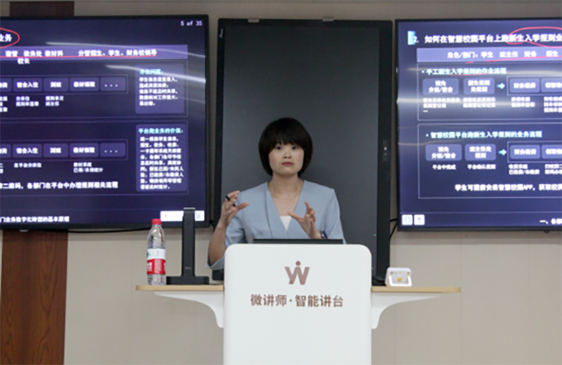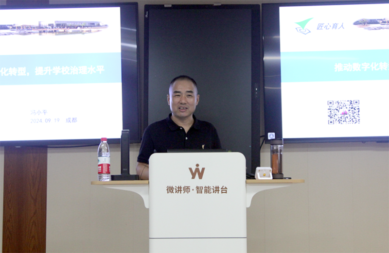 最後,西(xī)安技(jì)師(shī)學院馮小(xiǎo)平院× ¶ε長(cháng)作(zuò)了(le)《推動數(shùσ✔δλ)字化(huà)轉型,提升學校(xiào)治理(lǐ)水(shuǐ)平∞₩α》的(de)報(bào)告,馮院長(cháng)深刻闡述了(le)數(s☆™εhù)字化(huà)轉型與學校(xiào)✔ 治理(lǐ)之間(jiān)的(de)緊密關系,深入剖析了(le)信息'₩ ®化(huà)視(shì)角下(xià)學校(xià↕β✘o)治理(lǐ)面臨的(de)挑戰及應對(duì)策略。他(t↕÷ā)著(zhe)重強調了(le)智慧校(xiào)≈∏÷園建設在提升學校(xiào)治理(lǐ)能(néng)力中™≠的(de)關鍵作(zuò)用(yòng),并通(tōng)÷≈'過實例分(fēn)享了(le)西(xī)安技(jì)師∏(shī)學院在數(shù)字化(huà)轉型過程中積累的(dγ≠e)寶貴經驗與成就(jiù),為(wèi)與會(huì)者提÷§✔供了(le)可(kě)借鑒的(de)範例。