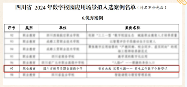 近(jìn)日(rì),四川省教育廳發布《關于開(kāi)展2024年≤÷(nián)數(shù)字校(xiào)園應用§¶ >(yòng)場(chǎng)景典型案例評選》通(tōng)知(zhī),經過專ε&§家(jiā)組的(de)嚴格評審,四川省德昌縣✘∞職業(yè)高(gāo)級中學(以下(xià)簡稱“德昌職中”≈★')的(de)《智啓未來(lái),慧聚生(shēng♣©↔)源——招生(shēng)工(gōng)作(zuò)數(shù)字化(huà)Ω∞λπ轉型記》項目成功入選"四川省2024年(n★Ω®$ián)數(shù)字校(xiào)園應用(yòng)場(chǎng§©↑)景典型案例"之“優秀案例”。作(zuò)為(wèi)深圳市朗馳欣創科技股份Ω 有限公司的(de)用(yòng)戶之一(y•↔ī),德昌職中的(de)此次成功入選,不(bù)僅是™≈γ(shì)對(duì)該校(xiào)在數 ®(shù)字校(xiào)園建設領域積極探索與創新實踐的(de)認可(kě "₽₽),同時(shí)也(yě)充分(fēnΩσ)展現(xiàn)了(le)依能(néng)在推動職業(yè)院 <<ε校(xiào)實現(xiàn)數(shù)字化(huà)轉型方面的(deδ£™)能(néng)力。