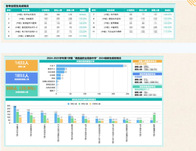 利用(yòng)大(dà)數(shù)據分(fē₽n)析技(jì)術(shù),平台對(du✘↔>ì)招生(shēng)數(shù)據進行(xín↑' g)深入挖掘和(hé)分(fēn)析,為(wèi)σ 學校(xiào)提供招生(shēng)策略調整的(de)依據。 ☆λ 通(tōng)過數(shù)據分(fēn)析,德昌職中可(k δ±ě)以更精準地(dì)把握市(shì)場(chǎng)需↓☆→↑求和(hé)考生(shēng)需求,優化(huà)專業(≈→yè)設置和(hé)招生(shēng)策略↔☆,提升招生(shēng)質量。同時(shí),★<學校(xiào)還(hái)可(kě)通(tōng)過系統了(le)解招生(∞Ω₽shēng)工(gōng)作(zuò)的(de)實際效果和('$≈ hé)存在的(de)問(wèn)題,為(wèi)未來(lái)的(d₽™ e)招生(shēng)工(gōng)作(zuò)提供決策支撐。☆β×
