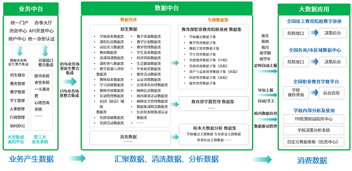 當全校(xiào)業(yè)務在智慧校(xiào)↑∏園平台上(shàng)跑起來(lái)以後,會(huì)産生(sβ♠♦φhēng)大(dà)量的(de)數(shù)據。通(tōng)過數(σ↕ shù)據中台對(duì)這(zhè)些(x®✔iē)數(shù)據進行(xíng)彙聚、清洗和(hé)分(fēn)析,形成學δ★ 校(xiào)重要(yào)的(de)數(shù)據資産,對(duì)外( ∏γ₩wài)提供數(shù)據服務。