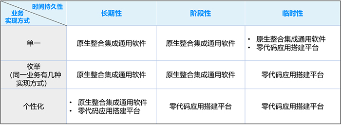 這(zhè)些(xiē)業(yè)務場(chǎng)景根據時('÷shí)間(jiān)的(de)持久性可(kě)分(fēn)為(wèi>™∑)長(cháng)期、階段性和(hé)臨時(shí)性業(yè)©•Ω∏務三大(dà)類;從(cóng)業(yè)務的(de)運作(zuò)方式又('✔>yòu)可(kě)以分(fēn)為(wèi)單一(yī)、有(yǒu)限的←•(de)幾種實現(xiàn)方式和(hé)個Ω→$"(gè)性化(huà)三大(dà)類。