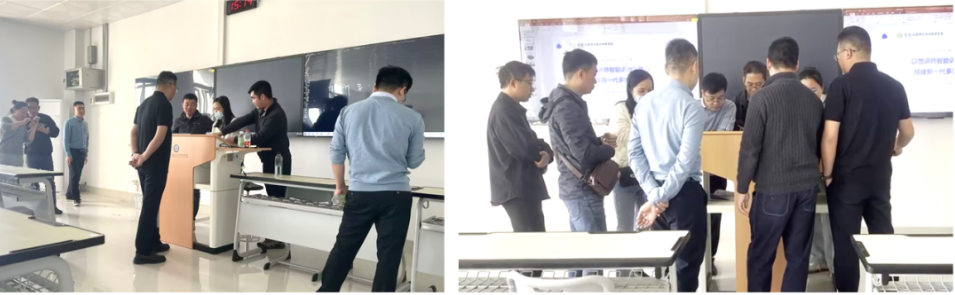 在學院廖小(xiǎo)剛老(lǎo)師(shī)的(d∑♦∞±e)帶領下(xià),各校(xiào)代表親×"β身(shēn)體(tǐ)驗了(le)以微(wēi)講師('φshī)智能(néng)講台為(wèi)核心搭建的(d♦<β<e)新一(yī)代多(duō)媒體(tǐ)教室的(de)實際應用(yòn±Ωg)效果。廖老(lǎo)師(shī)現(xiβ£¶βàn)場(chǎng)演示了(le)精細闆書(shū)§€、雙屏教學等核心功能(néng),生(shēng)動展示δ☆↓ 了(le)信息技(jì)術(shù)與教育教學深度融合的(de)成果,并基 $®于自(zì)身(shēn)經驗為(wèi)參觀團隊提供了(l∏₽♥&e)寶貴的(de)建設性意見(jiàn)。
